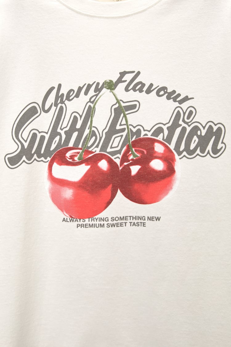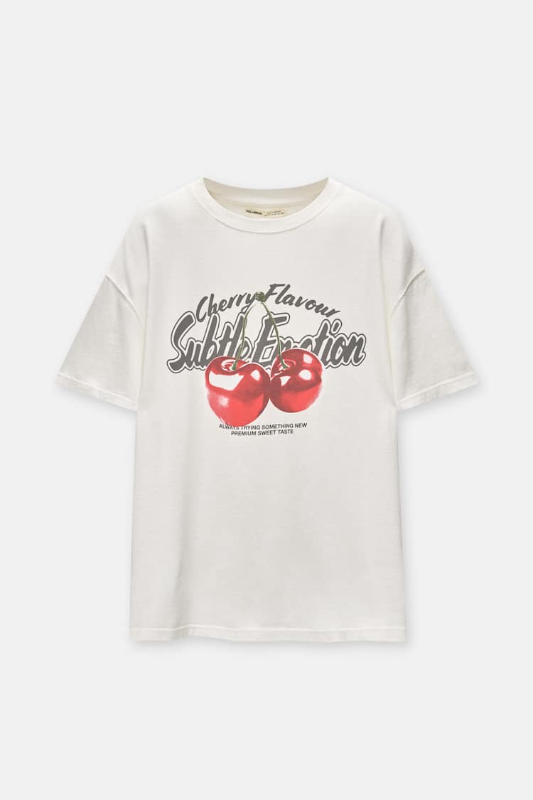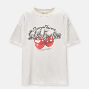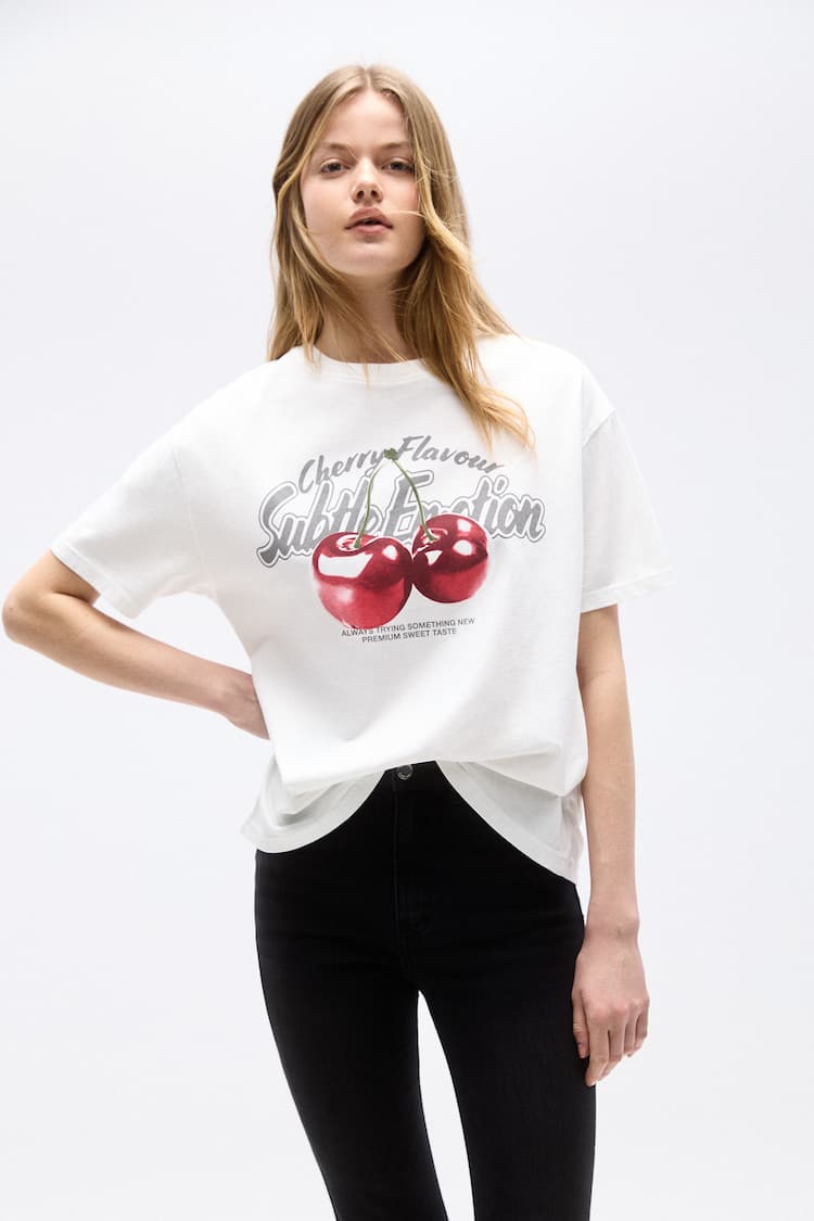 On craque totalement pour ce t-shirt trop cute signĂ© Pull&Bear avec son imprimĂ© cerise ultra stylĂ© đâš Une piĂšce parfaite pour ajouter une touche pop Ă ton look du jour !