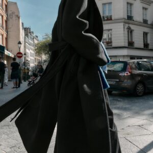 Noué à la taille sur une robe pour un look féminin et sophistiqué, ou ouvert sur un ensemble tailleur pour une allure plus citadine. Le manteau qui transforme le quotidien en moment d’élégance.