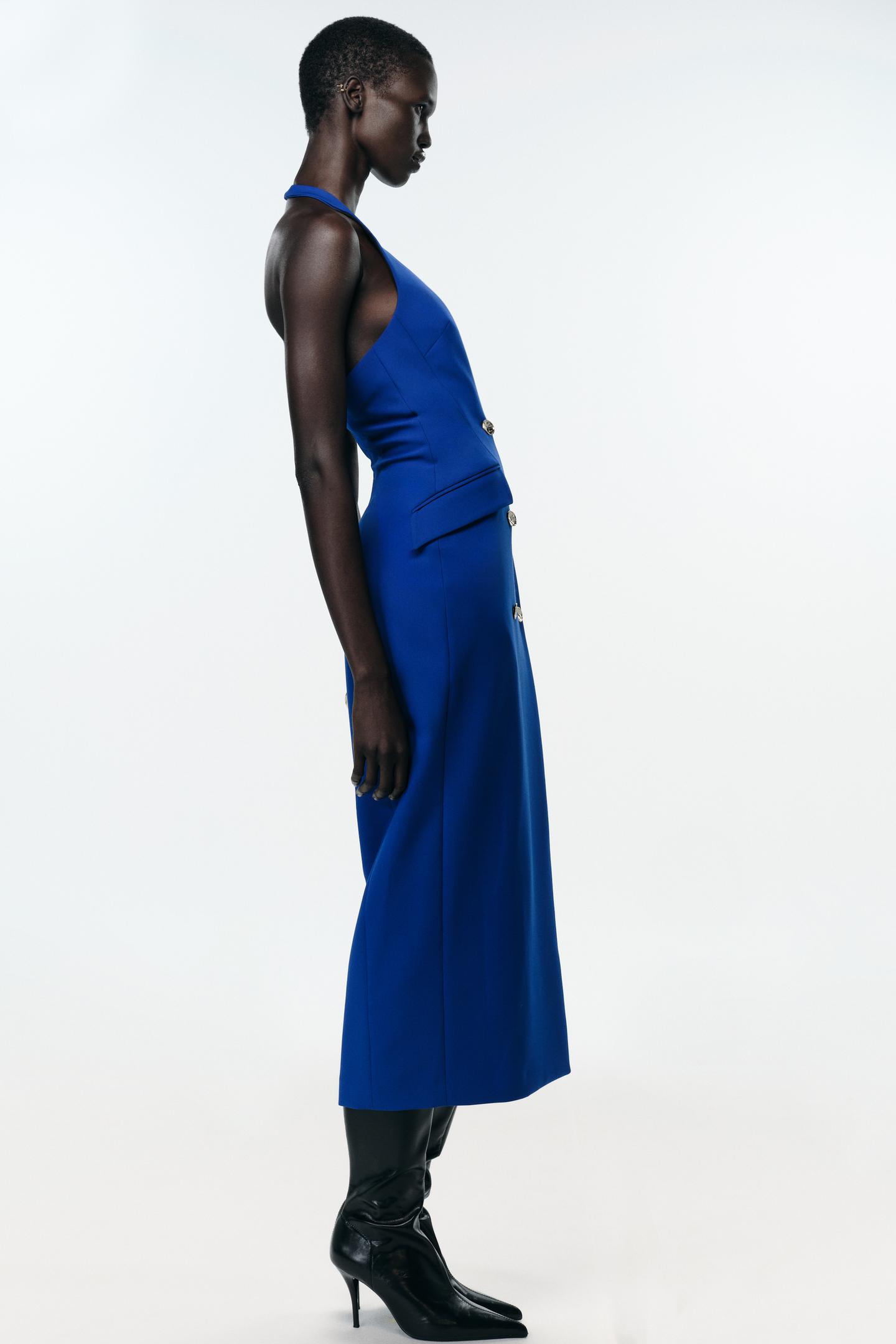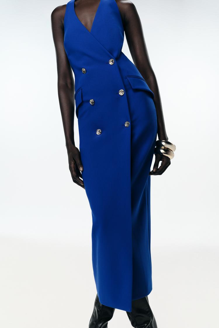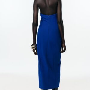 Associez-la à un blazer structuré et des escarpins pour une journée professionnelle, ou à une pochette dorée et des talons pour une soirée élégante. Cette robe s’adapte à chaque occasion avec distinction.